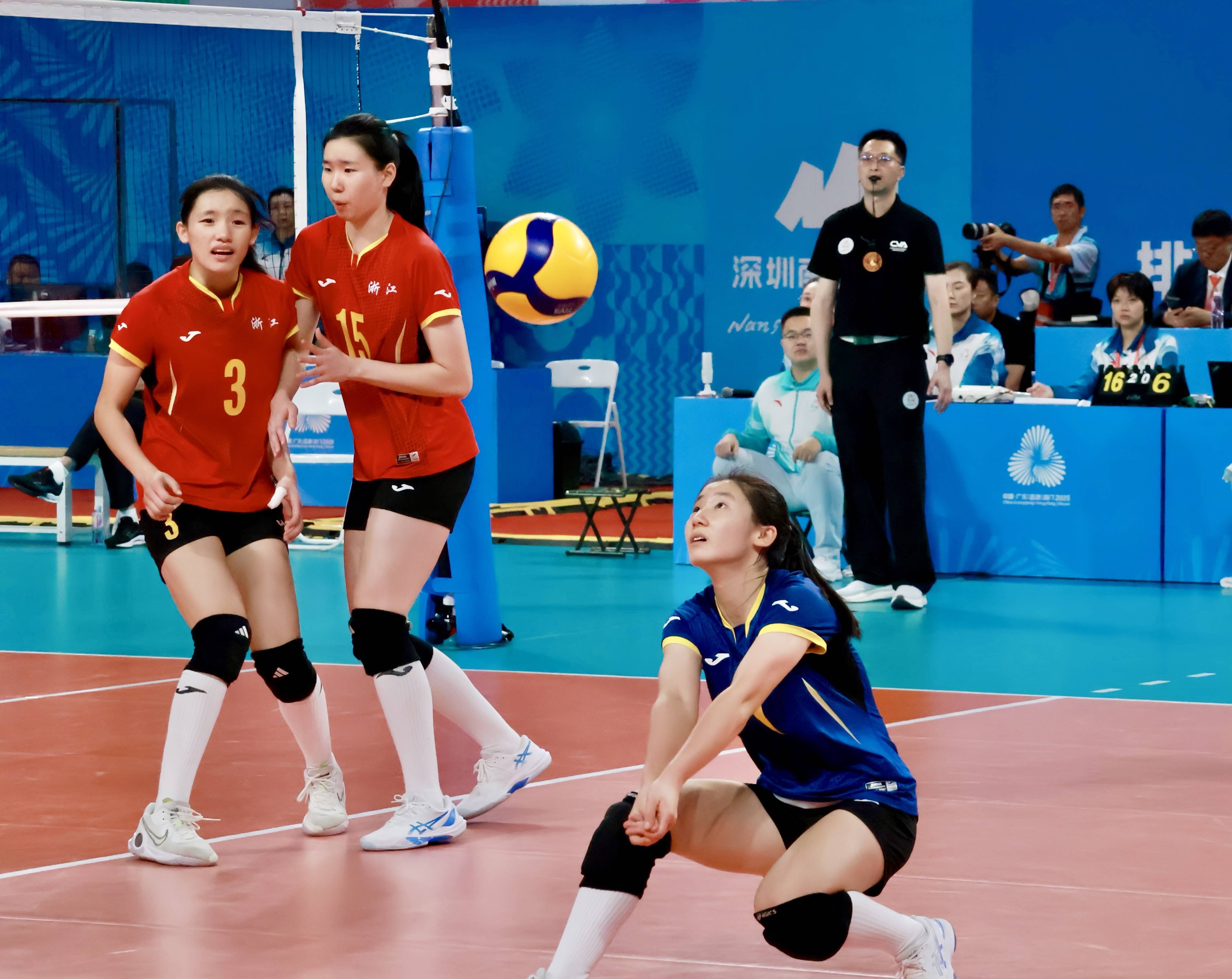 王诺平(蓝色球衣者)在比赛中救球。(羊城晚报供图)10日,十五运会女排U18项野心赛场,王诺平身着与队友不同神色的球服,用鱼跃、翻腾将着实贴网的暴扣逐一撑起,引得现场阵阵欣忭,最终匡助浙江队以3:0驯服四川队。诚然球队在11日不敌夺冠热点江苏队,但她的一传质地和浮松扑救,让东说念主印象潜入。