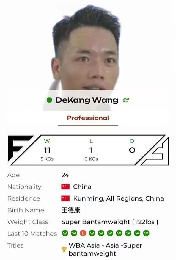 另一场重头戏在WBA超最轻量级亚洲拳王王德康与印度排行第一的拳手达曼德尔之间张开。王德康本年唯有25岁,是熊朝忠配头罗秀的表弟,来自熊朝忠外洋拳击健身俱乐部,恰是受熊朝忠成为中国首位世界拳王的影响,让这位细致内敛的小伙子决心走上业绩拳击这条说念路。王德康从17岁运转进入讲求业绩拳击比赛,现在保抓着12战11胜5场KO敌手的业绩战绩,他亦然熊朝忠弟子中在体能、战略派遣、清爽、举座实力等方面俱佳的拳手之一。在夙昔两里,王德康先是在广州10回合TKO宿将赵君,拿下WBA洲际头衔;旧年1月,王德康在泰国曼谷10回合完胜领有30场业绩赛教会的菲律宾悍将罗西亚;本年5月,王德康4回合TKO挑战者朱利亚诺·范托内,第四次卫冕WBA亚洲金腰带。